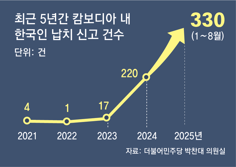 최근 들어 확인된 피해 신고는 최소 34건. 경찰은 실종자로 등록하고 외교부와 주캄보디아 대사관, 국제경찰기구(인터폴)와 공조 수사를 벌이는 한편, SNS에 올라오는 ‘해외 고수익 채용’ 글에 대한 모니터링을 강화하고 있다.