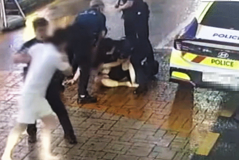 강하게 저항하던 A 씨는 전류 충격을 맞은 뒤 결국 길 위에 쓰러졌고, 친구 B 씨도 항의하다 경찰 제지에 순순히 응했다.