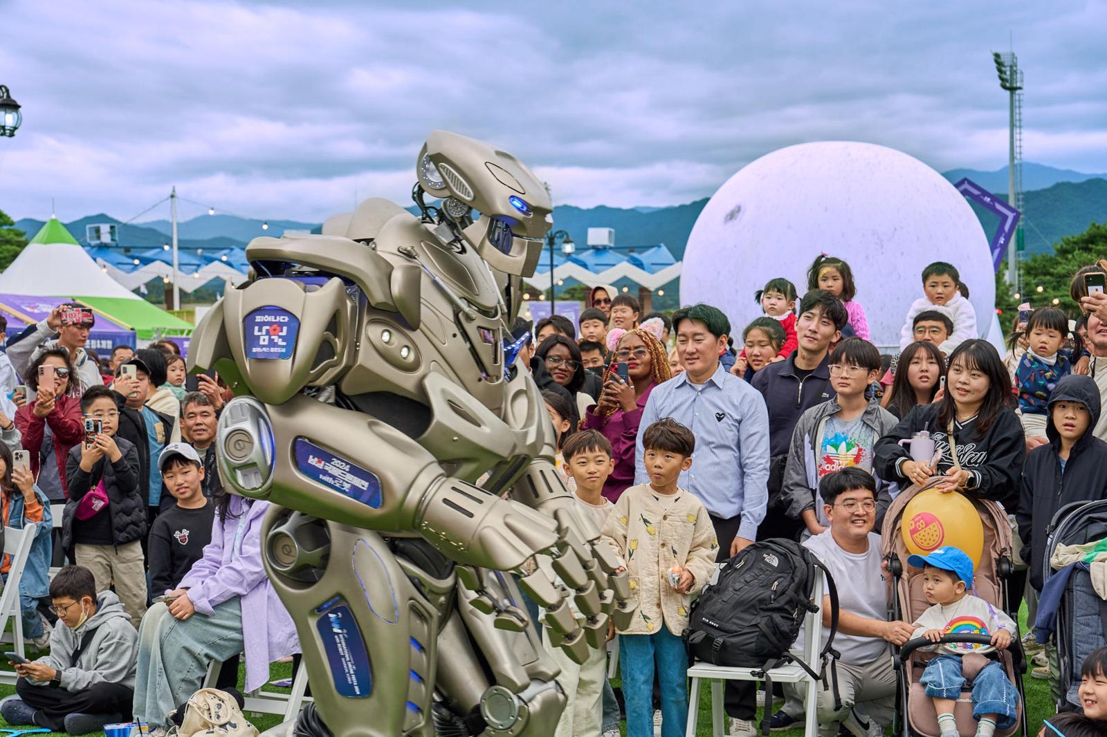 지난해 열린 ‘남원국제드론제전 with 로봇’에서 관람객들이 춤과 노래, 언어 소통이 가능한 로봇 ‘타이탄’의 공연을 관람하고 있다. 올해 행사는 16일부터 19일까지 열린다. 남원시 제공