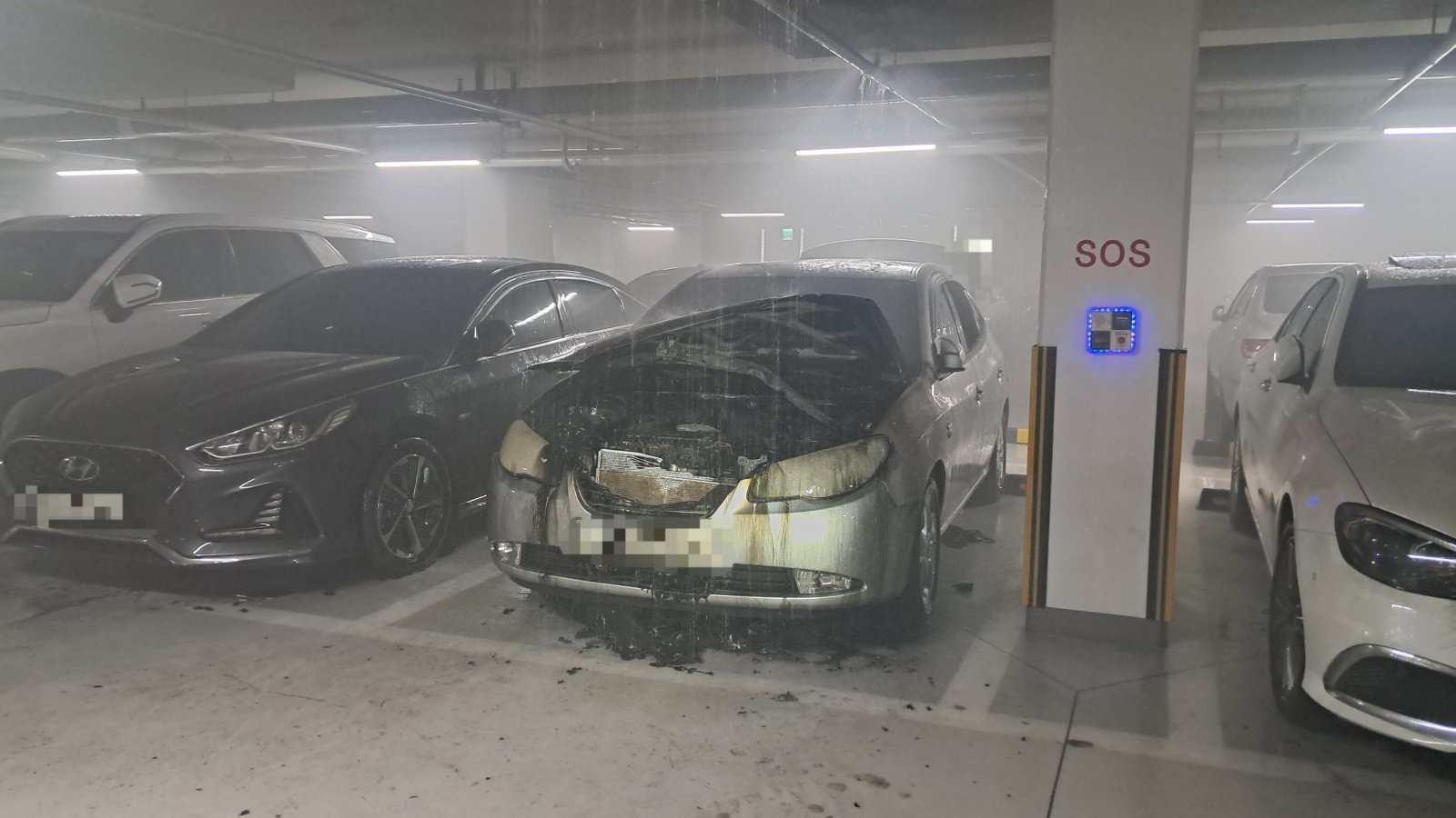 16일 오전 0시 24분께 경북 경산시 중산동 한 아파트 지하 3층 주차장에 세워둔 승용차에서 불이 나 20여분 만에 꺼졌다.