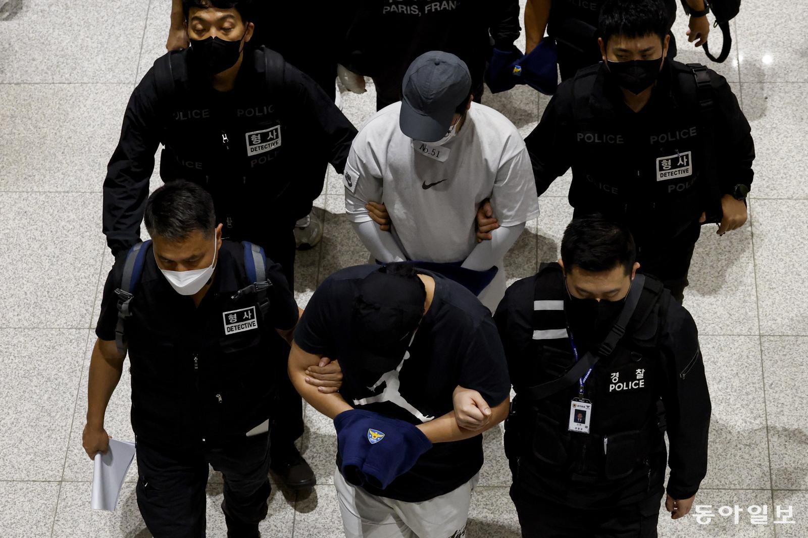 캄보디아에서 범죄에 가담했다가 이민 당국에 구금됐던 한국인 64명이 18일 한국 정부가 마련한 전세기를 타고 인천국제공항을 통해 송환되고 있다. 2025.10.18 전영한 기자 scoopjyh@donga.com