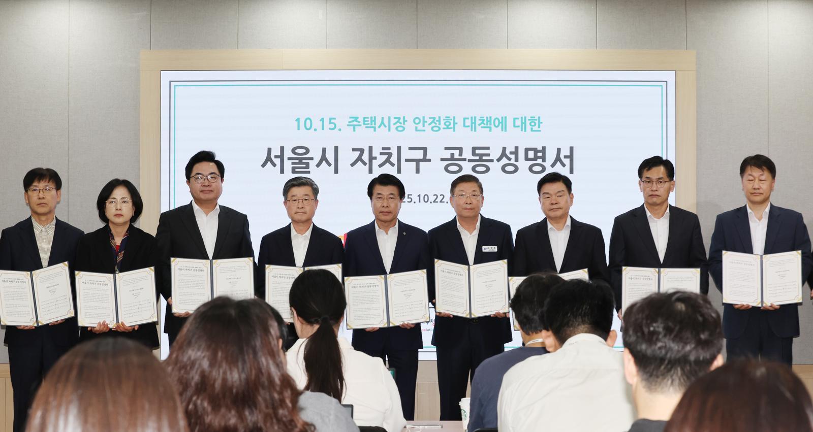 서울시 25개 자치구 중 15곳의 구청장들이 정부의 ‘10·15 주택시장 안정화 대책’ 철회를 요구하며 공동성명서를 발표했다. 이들은 국민의힘 소속 또는 무소속 단체장이 이끄는 곳으로, 재건축·재개발이 활발한 지역이다. 구청장들은 정부가 서울 전역을 토지거래허가구역과 투기과열지구로 묶은 조치에 대해 “지방자치를 무시한 일방적 결정”이라고 반발했다.