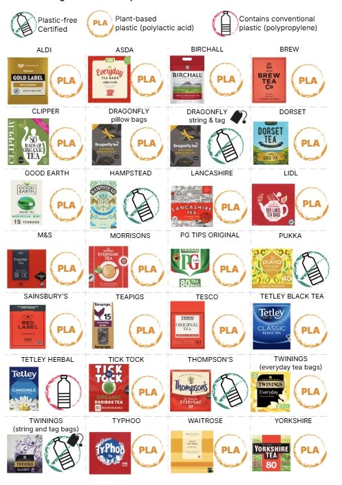 또한 테스코(Tesco), 세인즈버리(Sainsbury’s), 막스앤스펜서(M&S) 등 대형 슈퍼마켓의 자체 브랜드 티백에서도 모두 PLA가 검출됐다고 위치는 전했다.