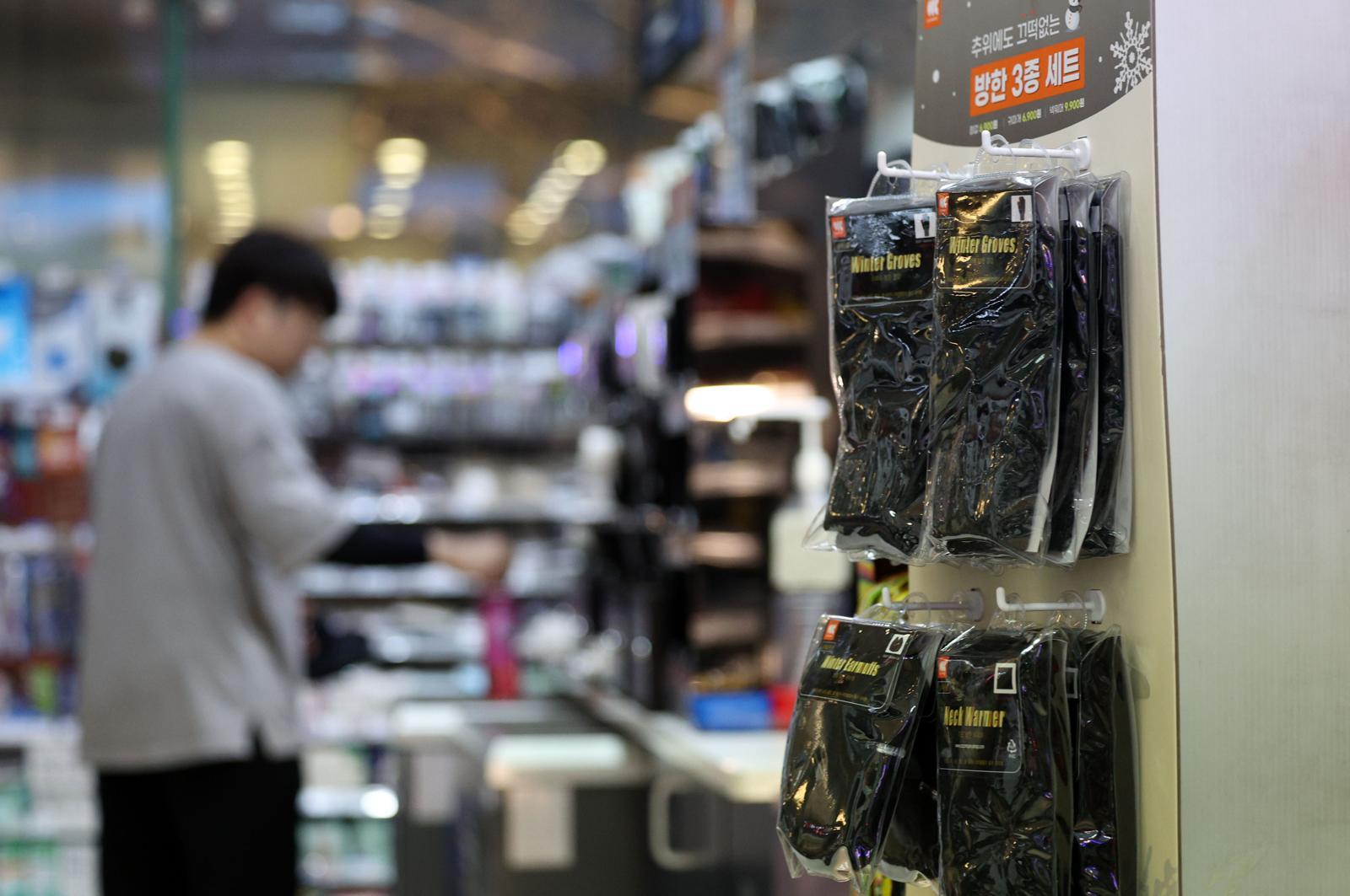 기온이 떨어지고 일교차가 커지면서 편의점에서 핫팩 등 방한용품과 겨울 대표 간식인 군고구마 등 관련 상품 매출이 증가하고 있다. 갑작스럽게 날씨가 쌀쌀해지면서 편의점에서 방한용품을 찾는 소비자들이 늘면서 GS25 등 편의점업계는 발빠르게 방한용품을 선보이고 있다. 24일 서울 강남구 GS타워 내 GS25 편의점에서 방한용품이 판매되고 있다. 2024.09.24. [서울=뉴시스]