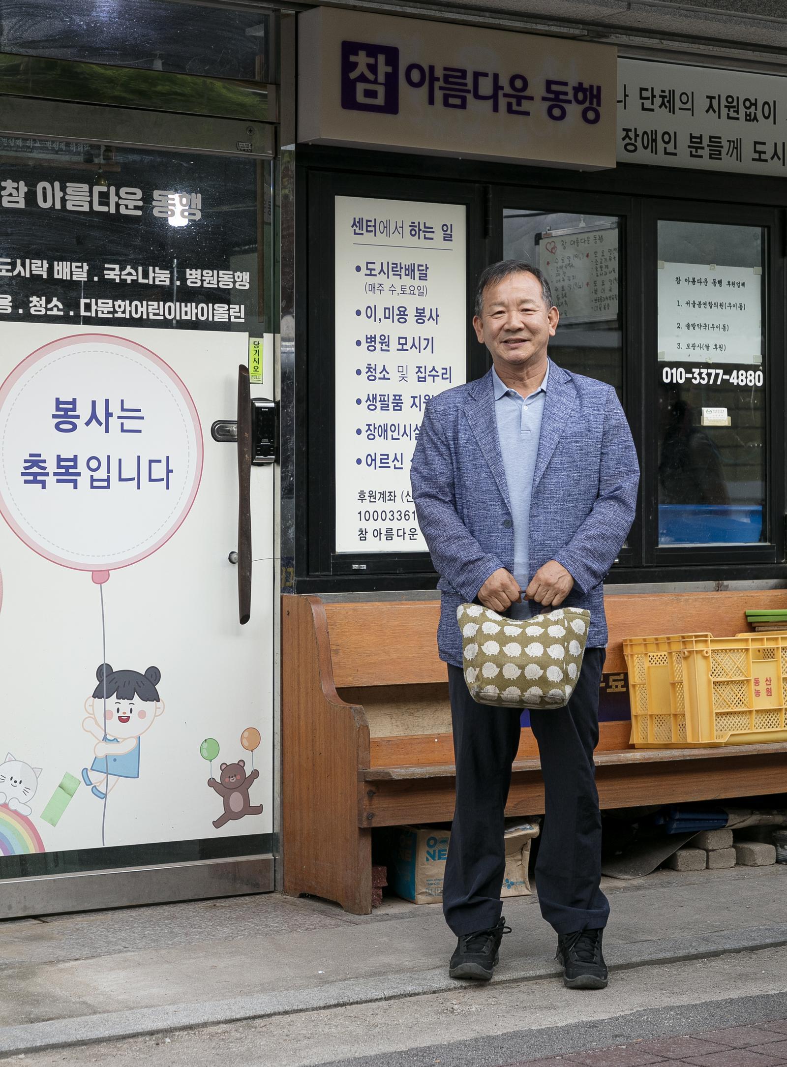 서울사이버대 사회복지대학 노인복지전공 동문인 나한희 씨는 종로에서 도시락 봉사활동을 하던 중 더 체계적으로 이웃을 돕고 싶다는 마음이 생겨 2013년 본교 노인복지전공에 입학해 학업을 시작했다. 현재는 개인택시 운행을 하면서 2019년부터 강북구에서 비영리단체 ‘참 아름다운 동행’을 이끌고 있다. 봉사자들과 함께 매주 수요일과 토요일에는 도시락을 전달하고, 일요일에는 국수 나눔으로 150여 명을 돕는다. 봉사 초기에는 대상자 확보조차 어려웠지만 지금은 지역에서 꼭 필요한 기관으로 자리 잡았다.