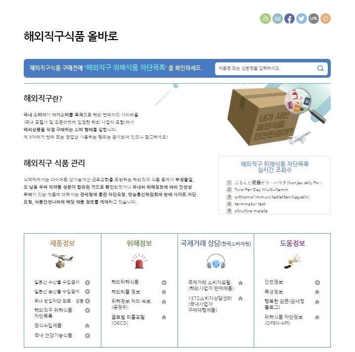 해외직구식품 구매 전 온라인 해외직구올라보 확인 필수