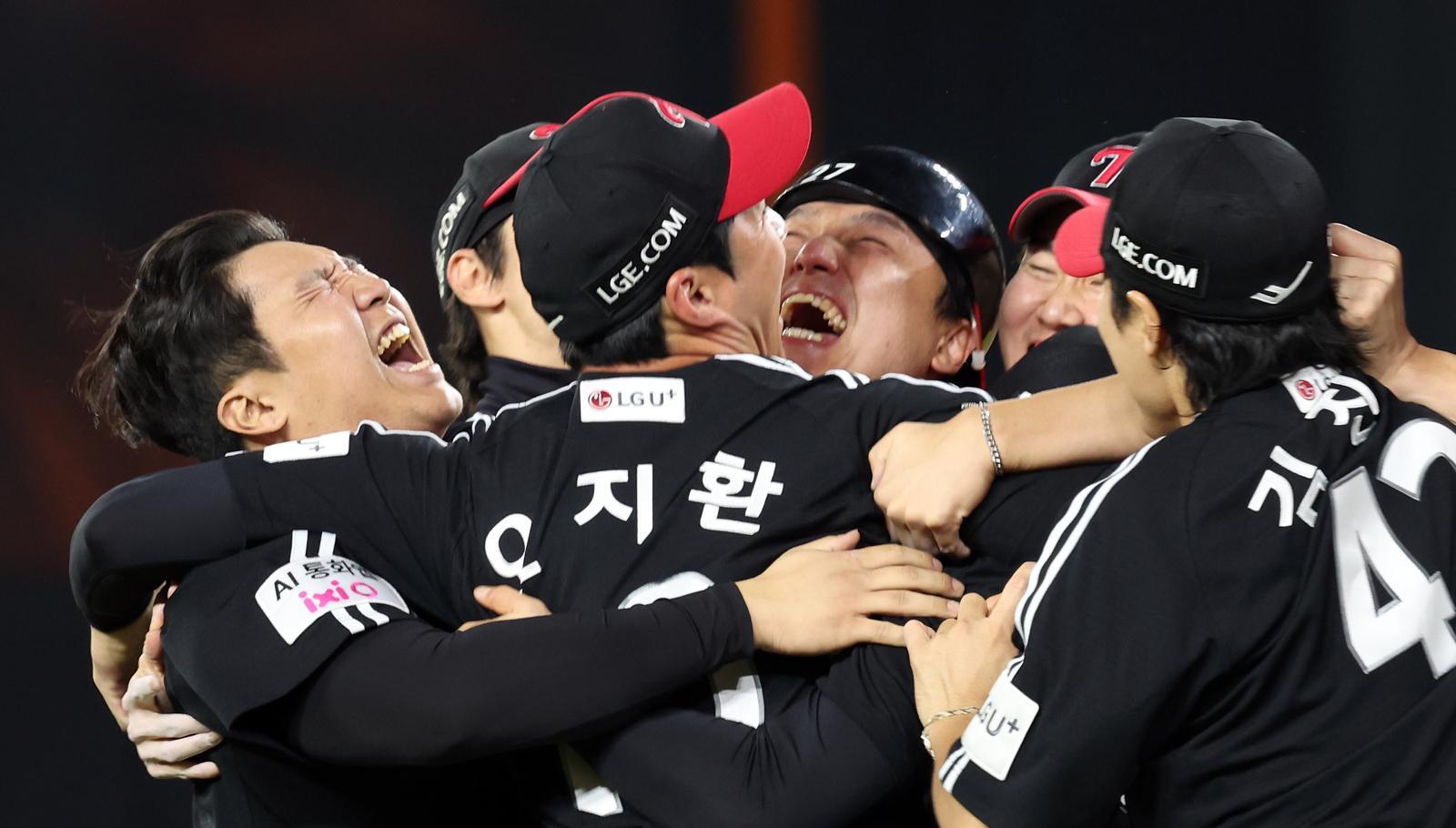 2년 전엔 29년을 기다렸다. 이번엔 2년 만에 다시 정상에 섰다. 투수 앞 땅볼을 친 한화 5번 타자 채은성(35)을 마무리 투수 유영찬(28)이 1루에서 잡아내면서 LG가 2025년 프로야구 챔피언에 등극했다.