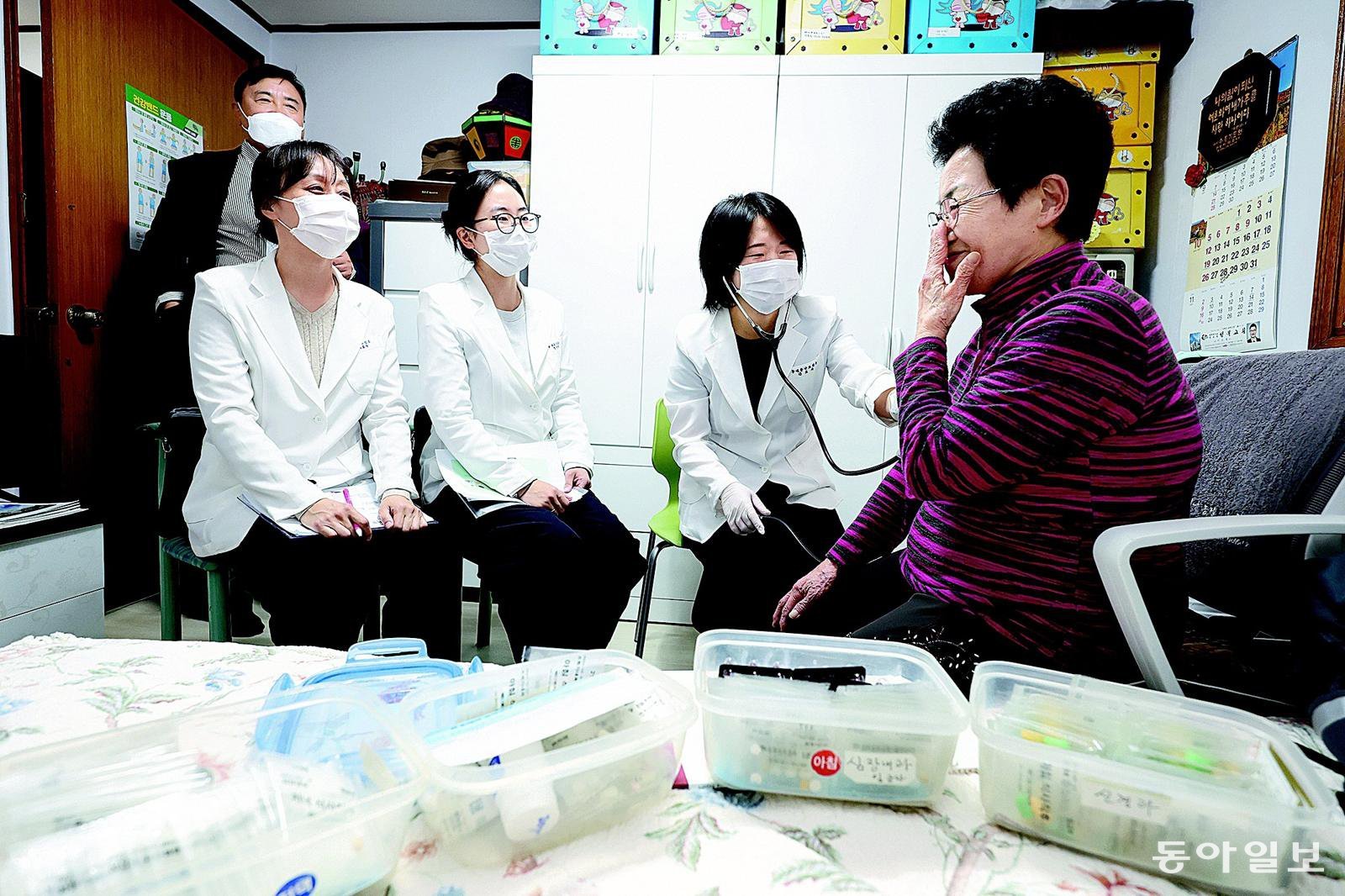 의사, 간호사, 영양사 등으로 구성된 건강장수팀이 노인 가구에 방문해 진료하고 있다. 변영욱 기자 cut@donga.com
