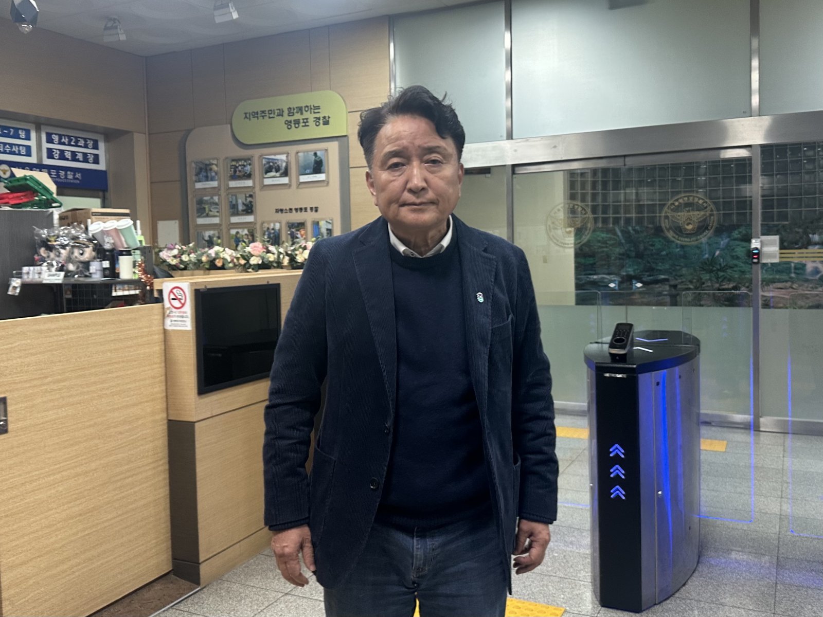 오송참사 국정조사에서 위증한 혐의를 받고 있는 김영환 충북지사가 4일 서울 영등포구 서울영등포경찰서에서 피의자 신분으로 조사받기 위해 출석하기 전 취재진 질문에 답변하고 있다. 2025.11.4/뉴스1김 지사는 이날 오후 1시 49분쯤 경찰 조사에 출석하는 길에는 “경찰에 가서 당당하게, 또 사실대로 성실하게 조사를 받겠다”고 말했다.