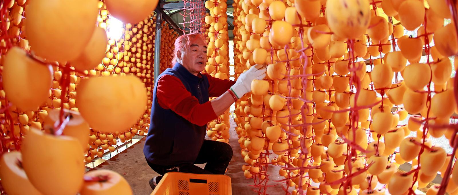 충북 괴산군 연풍면의 한 곶감 덕장에 주홍빛 감이 주렁주렁 매달렸다. 해발 1000m 높이의 연풍면 조령산 기슭 고랭지에서 수확한 감으로 만든 연풍 곶감은 육질이 부드럽고 당도가 높아 생산량 대부분을 사전 주문을 통해 판매할 정도로 인기다.