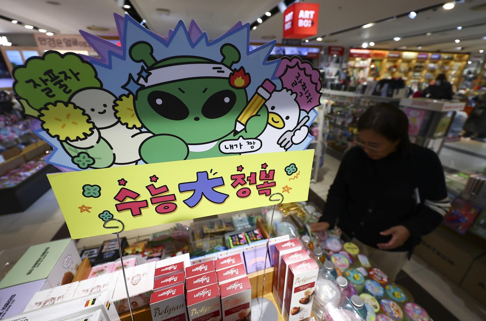 2026학년도 대학수학능력시험을 일주일 앞둔 6일 서울 종로구 교보문고 문구코너에서 한 시민이 수험생 선물을 고르고 있다. 2025.11.06 뉴시스
