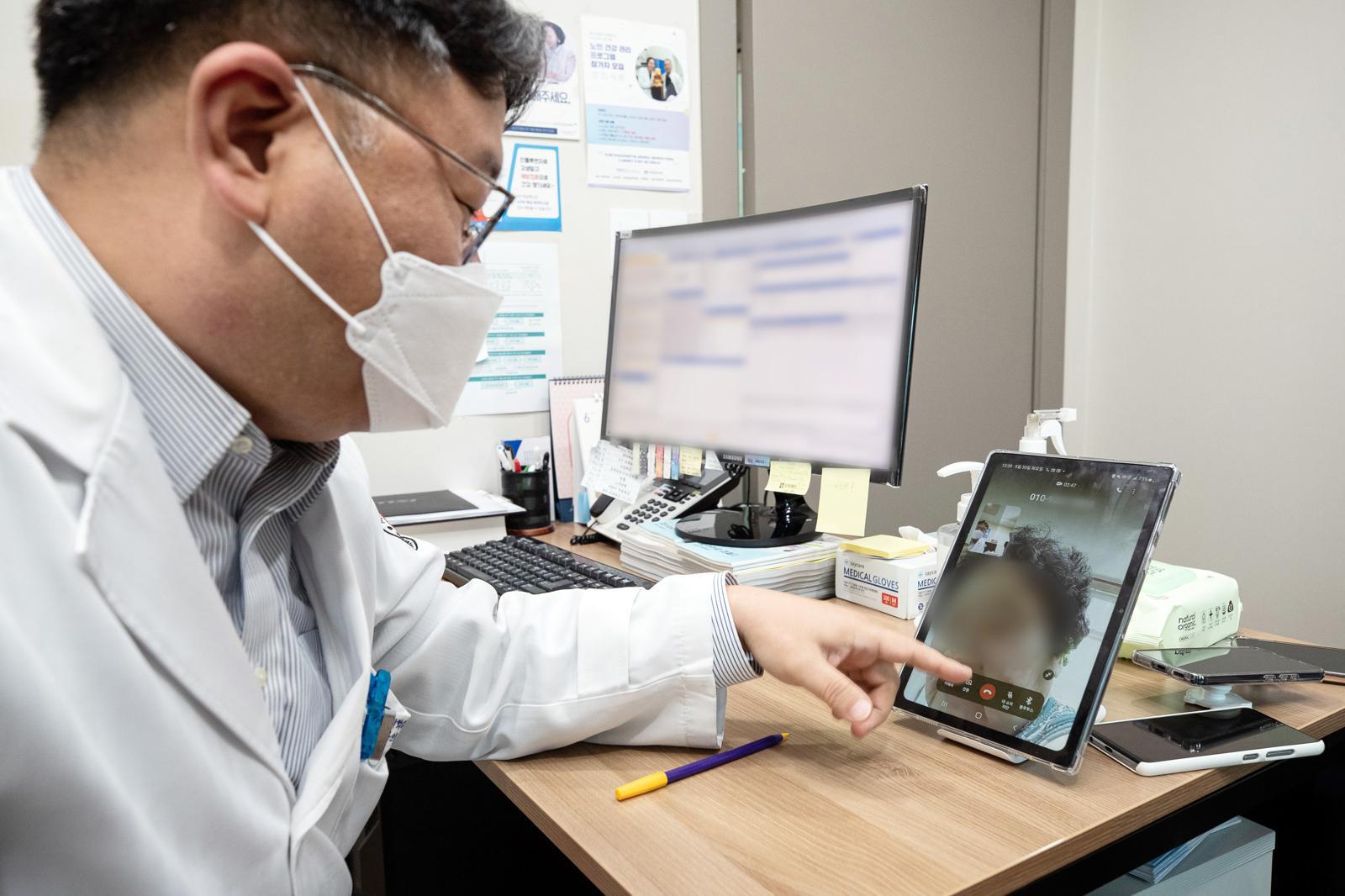백재욱 도봉구의사회 총무이사가 30일 서울 도봉구의 한 병원에서 비대면진료 시범사업 관련 비대면진료 실행 과정을 시연하고 있다. 2023.05.30. 공동취재사진.