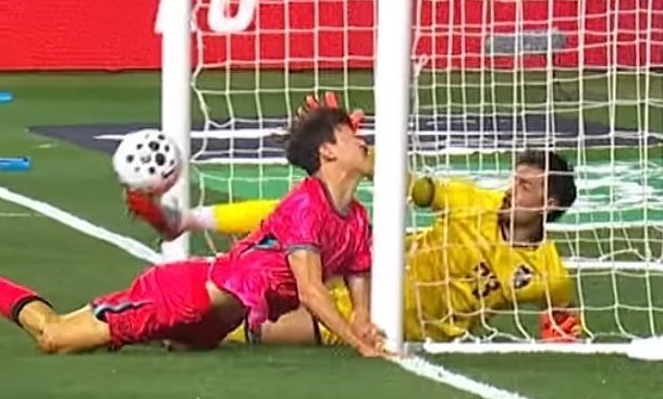 볼리비아 축구 국가대표팀 골키퍼가 문전을 지키던 중 한국 대표팀 이재성의 머리가 골대에 부딪히지 않도록 손으로 막아주는 듯한 장면이 포착돼 화제가 되고 있다.