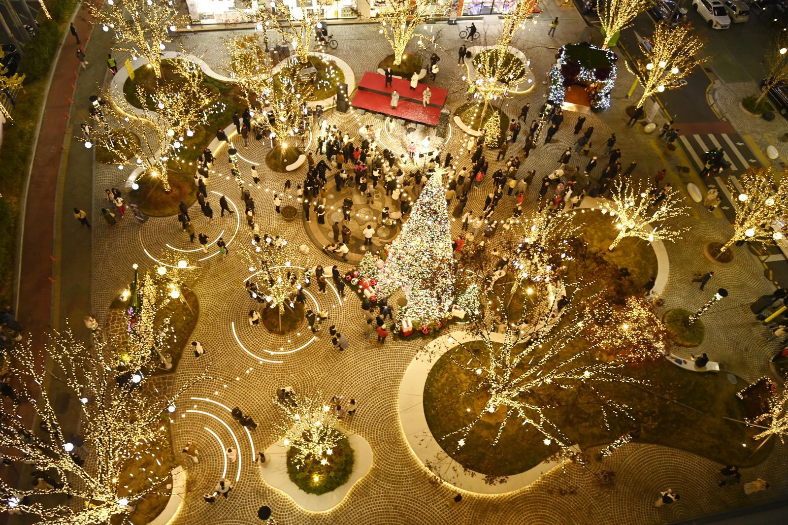 대구 달성군 다사광장에서 크리스마스트리 조명이 겨울 낭만을 선사할 환한 불을 밝히고 있다. 달성군은 내년 3월까지 야관 경관 조명을 밝힐 예정이다.