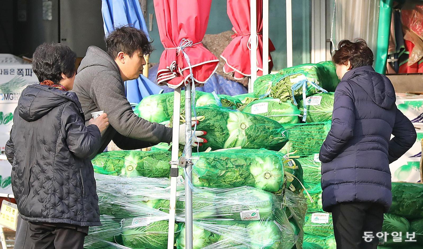 30일 대전 유성구 노은농수산물도매시장에서 김장철을 맞아 시민들이 배추를 고르고 있다.