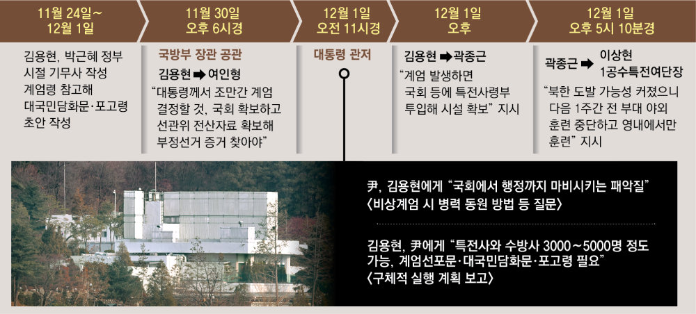검찰 특별수사본부와 특검은 지금까지 계엄 준비 과정 등을 수사하며 “야당 폭거에 대한 경고성 계엄이었다”는 윤 전 대통령 측 주장을 반박해 왔다. 윤 전 대통령은 지난해 12월 12일 대국민 담화에서 “과거의 계엄과는 달리 계엄의 형식을 빌려 민주당의 폭거 등 작금의 위기 상황을 국민들께 알리려 한 것뿐”이라고 주장했다.