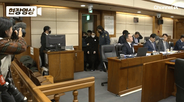 서울중앙지법 형사합의27부는 이날 자본시장법 위반 등의 혐의로 구속 기소된 김 여사에 대한 결심 공판을 열었다. 재판부가 공판 개시 전까지 촬영을 일부 허가하면서 김 여사의 모습이 공개됐다.