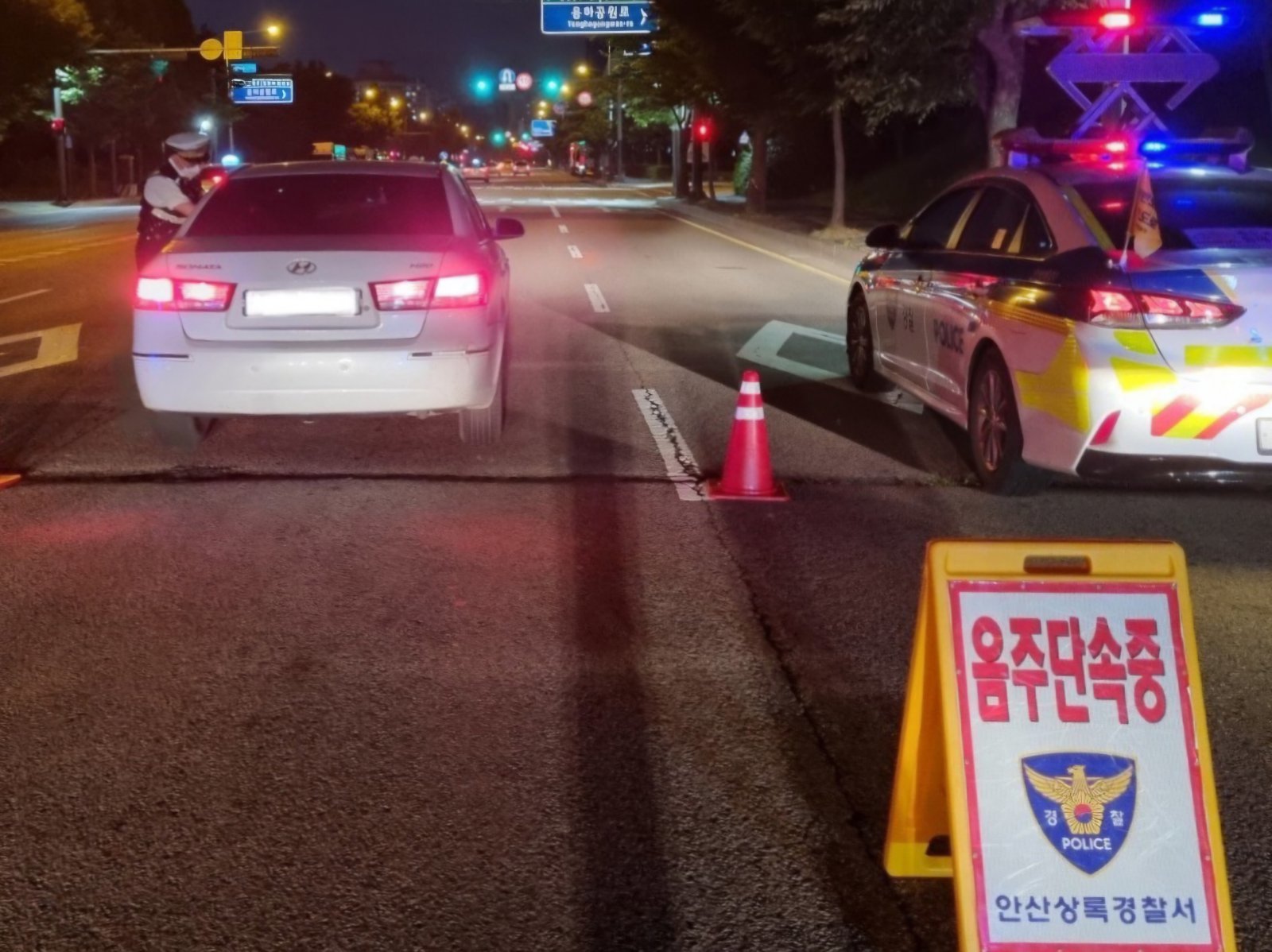 현장에 출동한 경찰이 A순경의 혈중알코올농도를 측정한 결과 면허정지(0.03%~0.08% 미만) 수준으로 나타났다.
