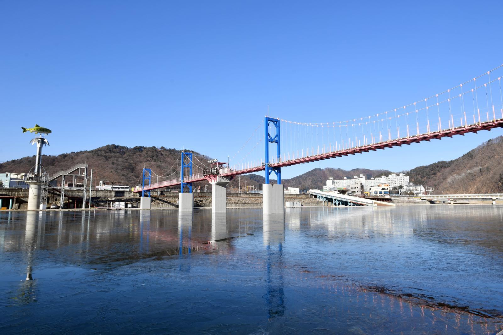 내년 1월 강원 화천 산천어축제가 열릴 화천천의 결빙이 시작됐다. 7일 화천군에 따르면 이달 초부터 영하권의 날씨가 이어지면서 3일부터 화천천 상류 수면에 살얼음이 끼기 시작한 데 이어 4, 5일 잇따라 아침 최저 기온이 영하 10도 아래로 떨어지면서 화천천 전체로 결빙이 확산했다. 올해 첫 결빙은 예년에 비해 약 4일 이른 수준이다.