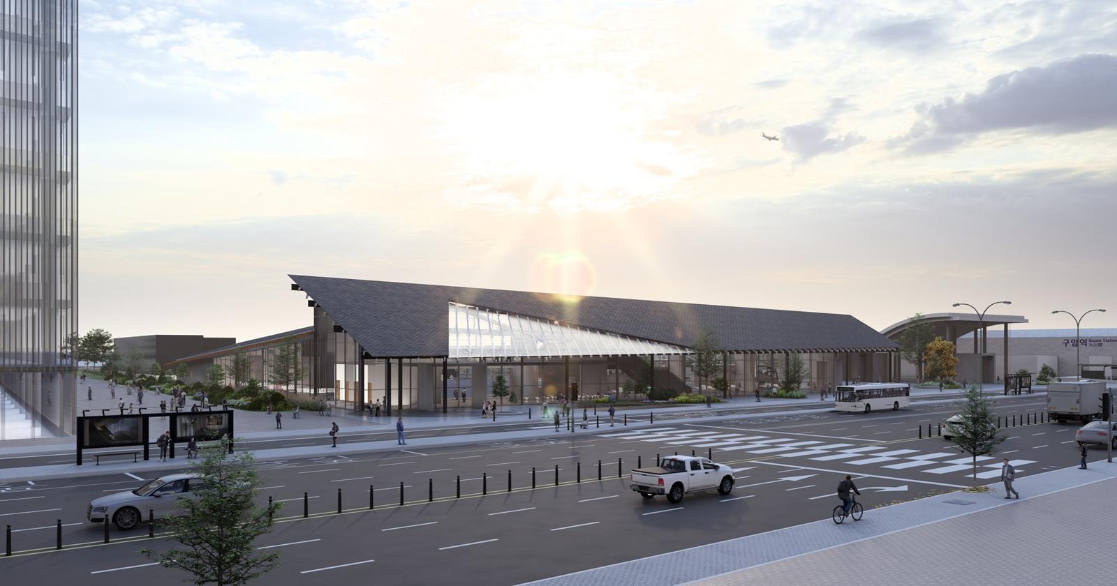 대전시는 29일 유성복합터미널 준공식을 열고 내년 1월 운영을 시작한다고 밝혔다. 사진은 유성복합터미널 조감도. 대전시 제공