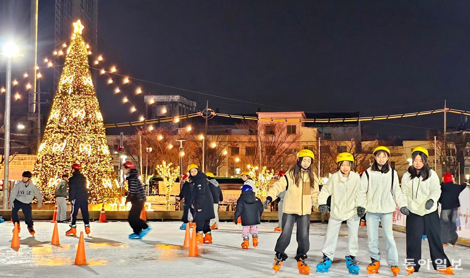 12일 인천 동구 동인천역 북부광장 화도진 스케이트장을 찾은 청소년들이 스케이트를 타면서 겨울을 만끽하고 있다. 화도진 스케이트장은 1800㎡ 규모의 빙상 경기장과 450㎡ 규모의 썰매장, 매점 등을 갖추고 있다. 내년 2월 7일까지 문을 열고, 평일(월∼금)은 오전 11시부터 오후 9시 30분까지, 토·일·공휴일은 오전 10시부터 오후 10시까지 운영한다. 이용료는 2000원이다.
