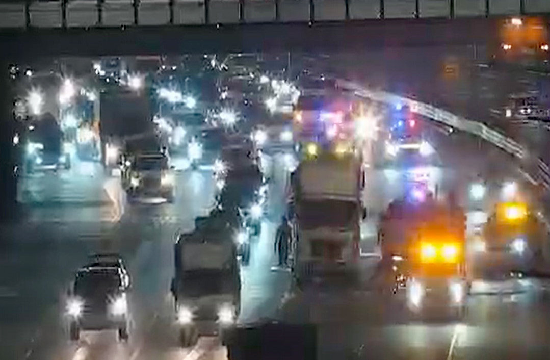 17일 오전 5시 50분쯤 서울 강변북로 성수대교 북단 일산방향에서 발생한 교통사고로 3개 차선이 통제돼 출근길 정체가 생기고 있다. (서울시설공단 CCTV 캡쳐) 2025.12.17