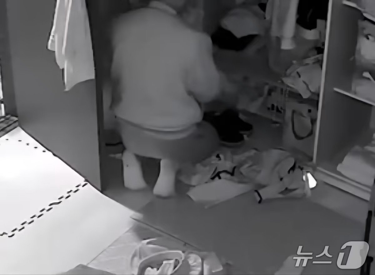 지난 5월 27일 0시 57분쯤 경북 안동의 한 아파트를 무단침입한 스토킹 범죄 피의자 30대 A 씨가 피해자의 옷장을 뒤지고 있는 모습이 홈캠에 찍혔다. 뉴스1