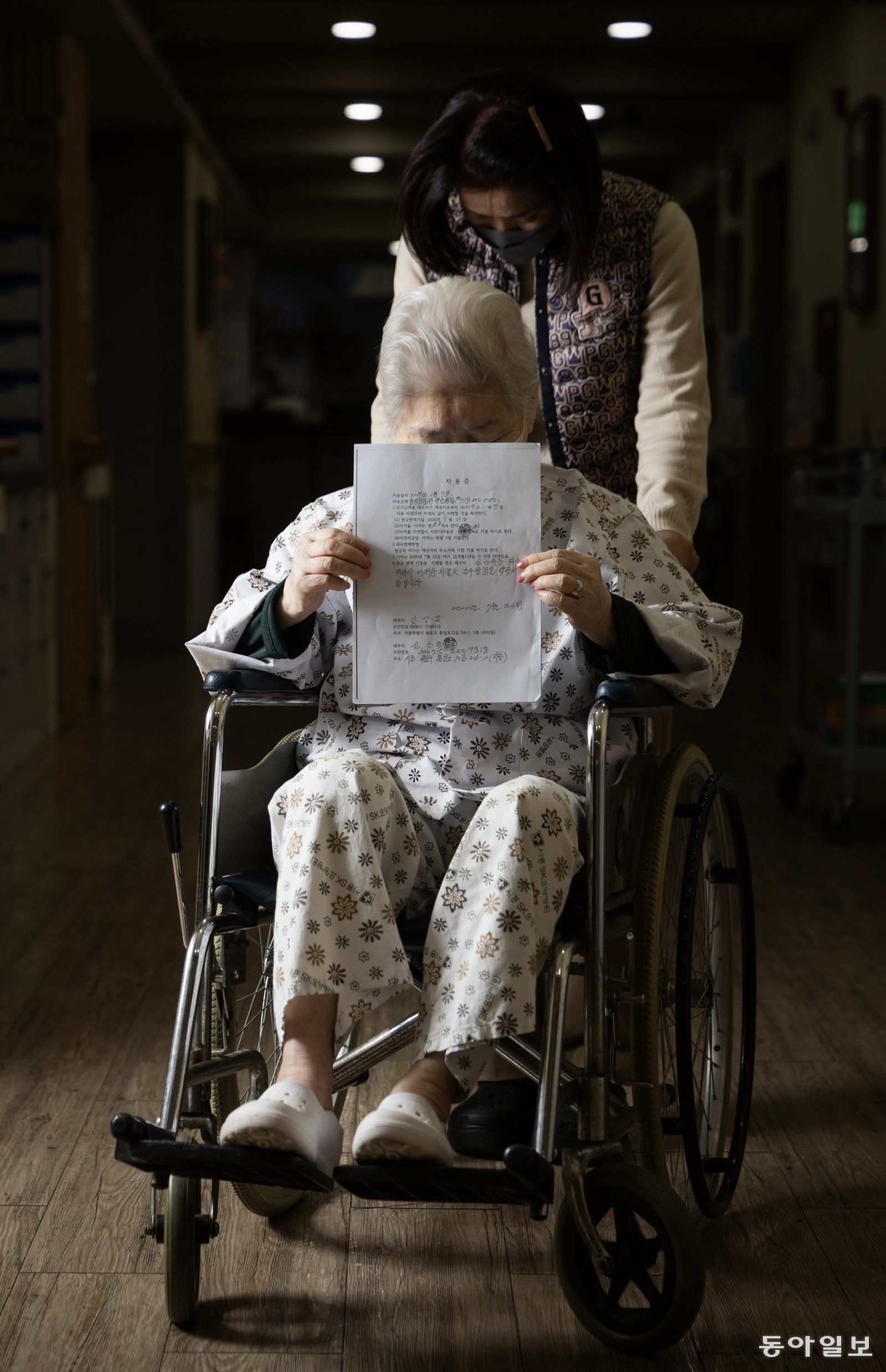 이웃에게 6억 원이 넘는 돈을 빌려줬다가 돌려받지 못한 치매 환자 서향분 씨(86)가 휠체어에 앉아 ‘차용증’을 돌려주는 모습. 그의 치매 남편은 돈을 떼인 스트레스에 시달리다가 3년 전 먼저 세상을 떠났다.동아일보 히어로콘텐츠팀이 치매 노인과 가족 36명을 심층 인터뷰하고 학대 판정서 379건을 전수 분석한 결론은 하나다. ‘치매 머니 사냥’은 개인의 불행이 아닌 시스템의 방조 탓이다. 154조 원에 달하는 한국의 치매 머니를 지키려면, 이제 국가가 나서야 한다.