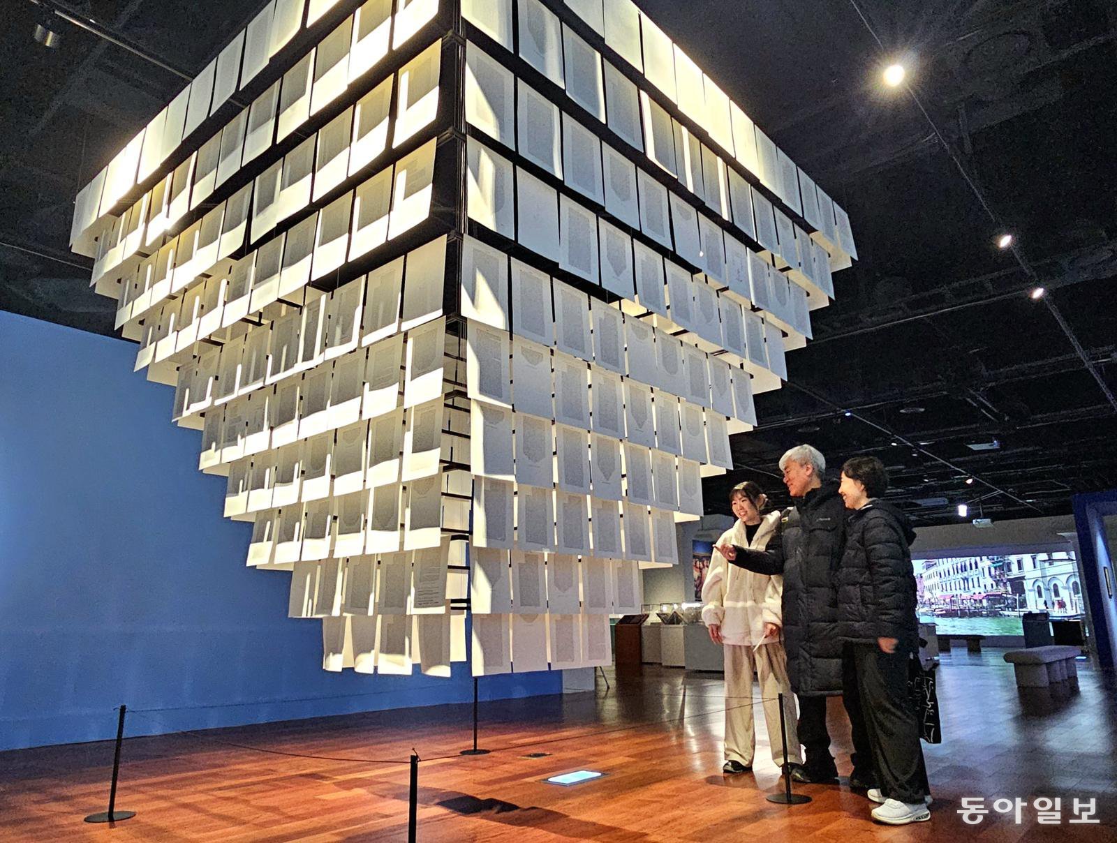 12일 인천 연수구 국립세계문자박물관을 찾은 가족이 ‘천천히 서둘러라: 알도 마누치오, 세상을 바꾼 위대한 출판인’ 기획특별전을 관람하고 있다. 내년 1월 25일까지 열리는 특별전에서는 책을 통해 지식의 대중화를 이끈 위대한 출판인 알도 마누치오의 문화유산을 살펴볼 수 있다.