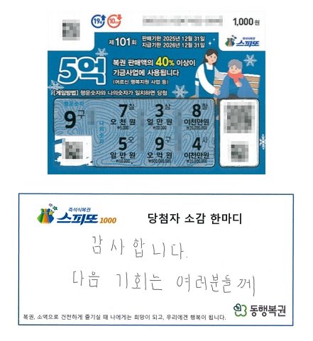 집에 도착해 별 생각 없이 복권을 긁던 순간, A 씨는 믿기 힘든 숫자를 마주했다. A 씨는 “처음에는 머리가 하얘졌다”며 “정말 5억 원이 맞는지 계속 다시 확인했다”고 말했다.