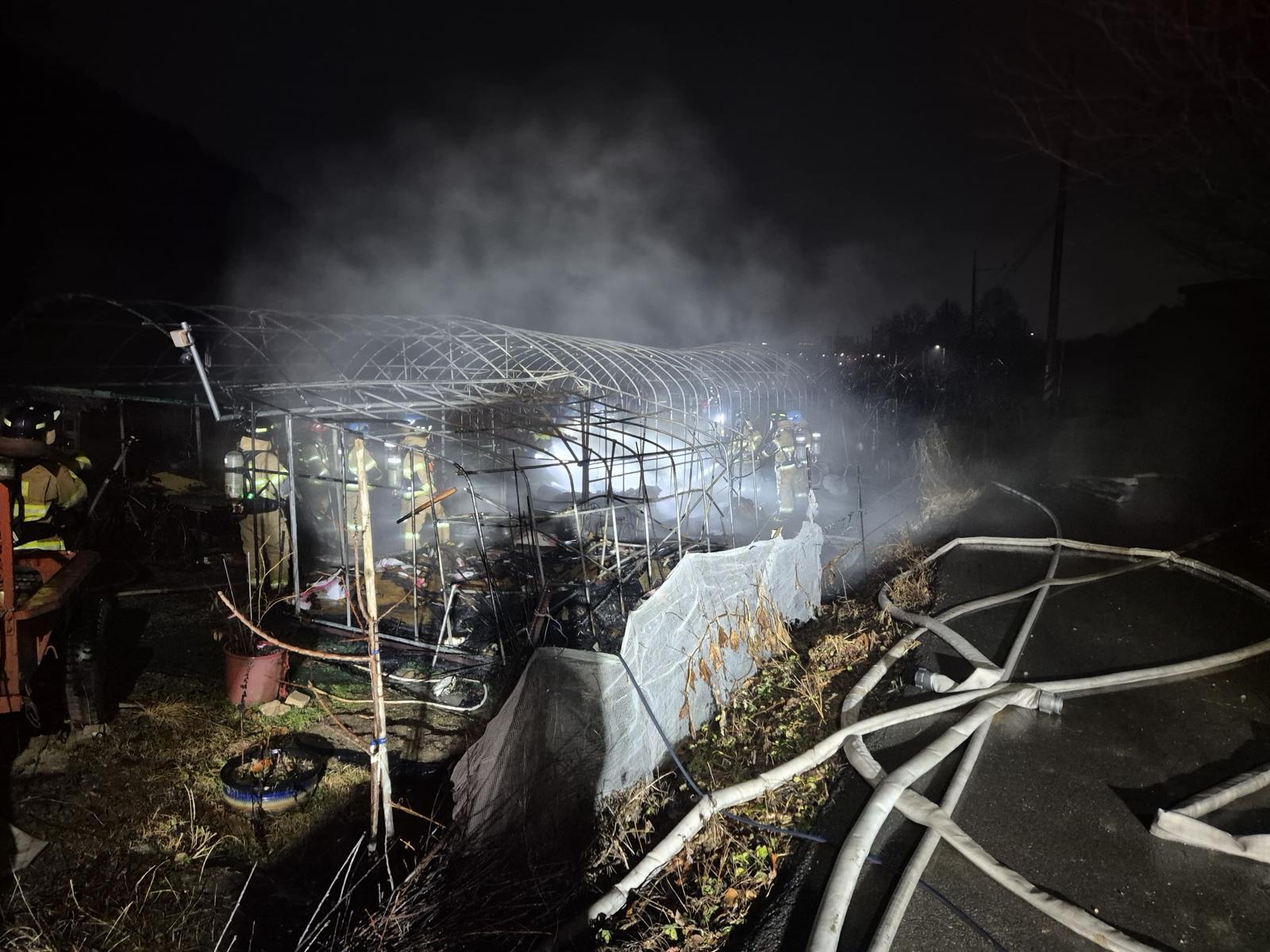 “복숭아밭 검은 연기”… 비닐하우스서 잠자던 부부, 화재로 사망