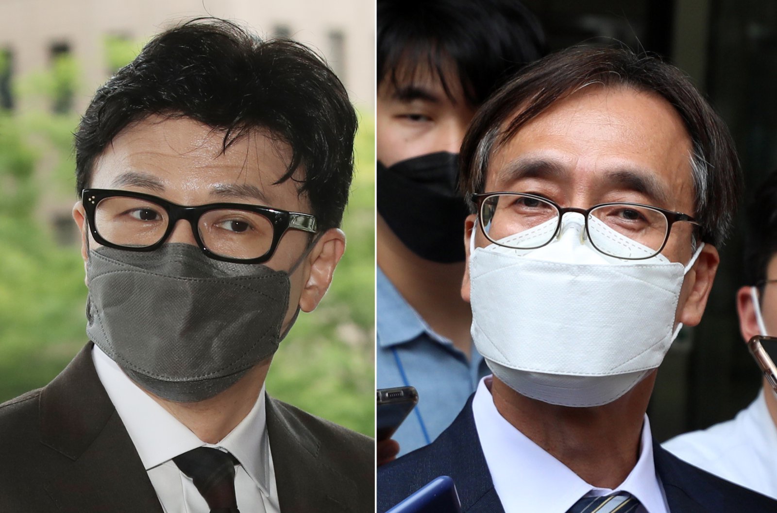 조한동훈 법무부 장관이 21일 오후 정부과천청사 법무부로 들어서고 있다. 같은날 정진웅 법무연수원 연구위원이 서울 서초구 서울고등법원에서 열린 ‘한동훈 독직폭행’ 혐의 관련 항소심 선고 공판을 마친 후 입장을 밝히고 있다. 2022.07.21. [과천·서울=뉴시스]