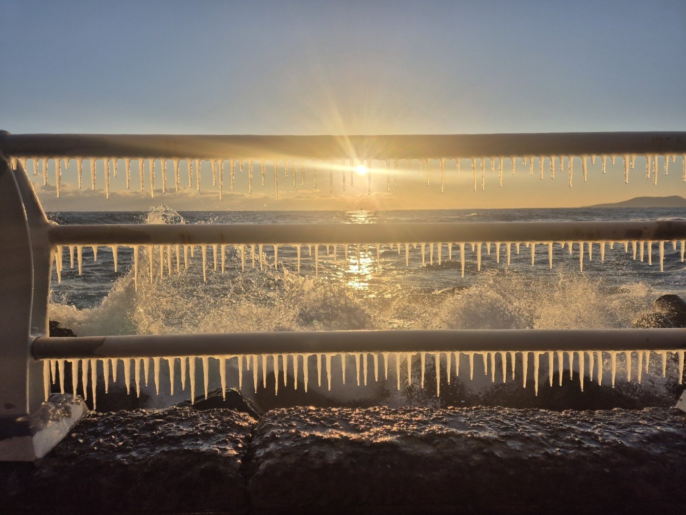 강원 대부분 지역에 한파특보가 발효된 26일 동해안 대표 해안도로인 강릉시 강동면 심곡~금진 구간 헌화로 난간에 고드름이 매달려 있다. 2025.12.26/뉴스1