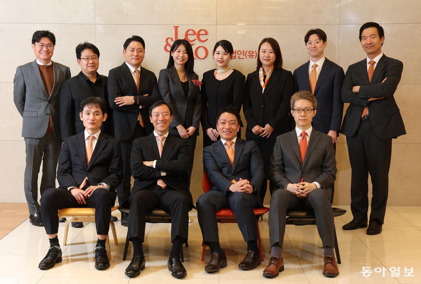 서울 중구 법무법인 광장 본사에서 만난 ‘경영권 분쟁 전담팀’의 변호사들. 앞줄 왼쪽부터 윤용준 이세중 정다주 김경천 변호사. 뒷줄 왼쪽부터 김유석 장이준 홍형근 나누리 이지민 김은아 김상우 권구범 변호사. 변영욱 기자 cut@donga.com