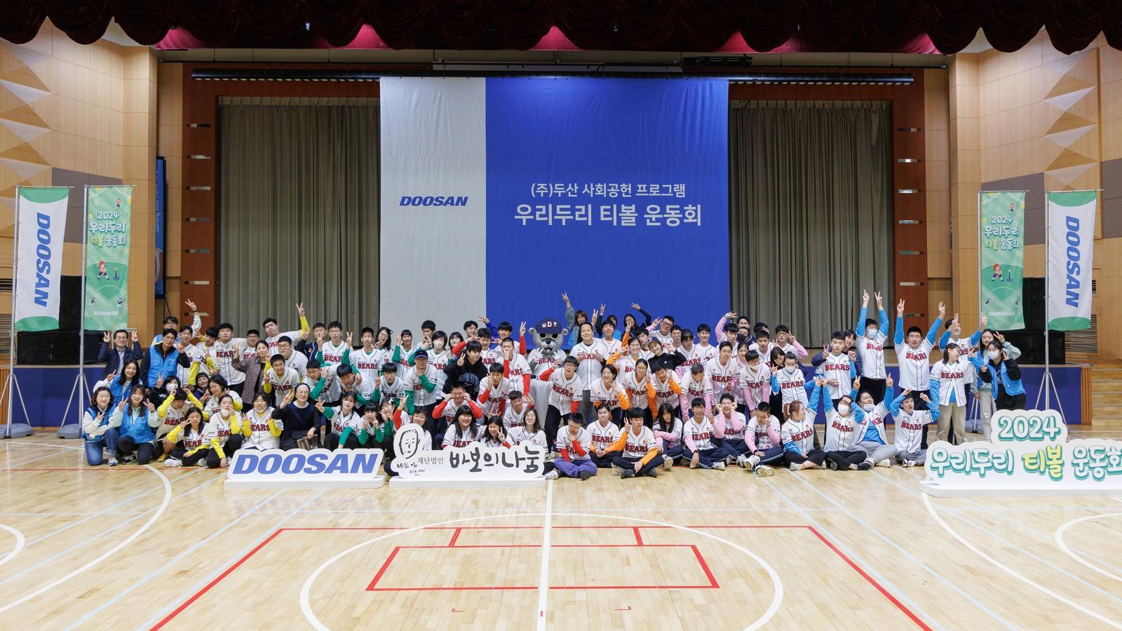 두산은 청소년 등 미래 인재들이 잠재력을 키울 수 있는 기회도 제공하고 있다. 대표적인 사회공헌 프로그램이 ‘우리두리’로 2016년부터 발달장애 청소년에게 생활체육 활동을 지원하고 있다. 투수 없이 타격 중심으로 야구를 변형한 팀 스포츠인 ‘티볼’을 통해서다. 실외 활동이 드문 발달장애 청소년의 체력과 사회성을 고루 높이기 위함이다. 지난해까지 1400명에 이르는 청소년이 우리두리에 참여했다. 두산은 지난해 10월 임직원 자원봉사자들과 함께 ‘우리두리 티볼 운동회’를 열어 청소년들을 응원하기도 했다.
