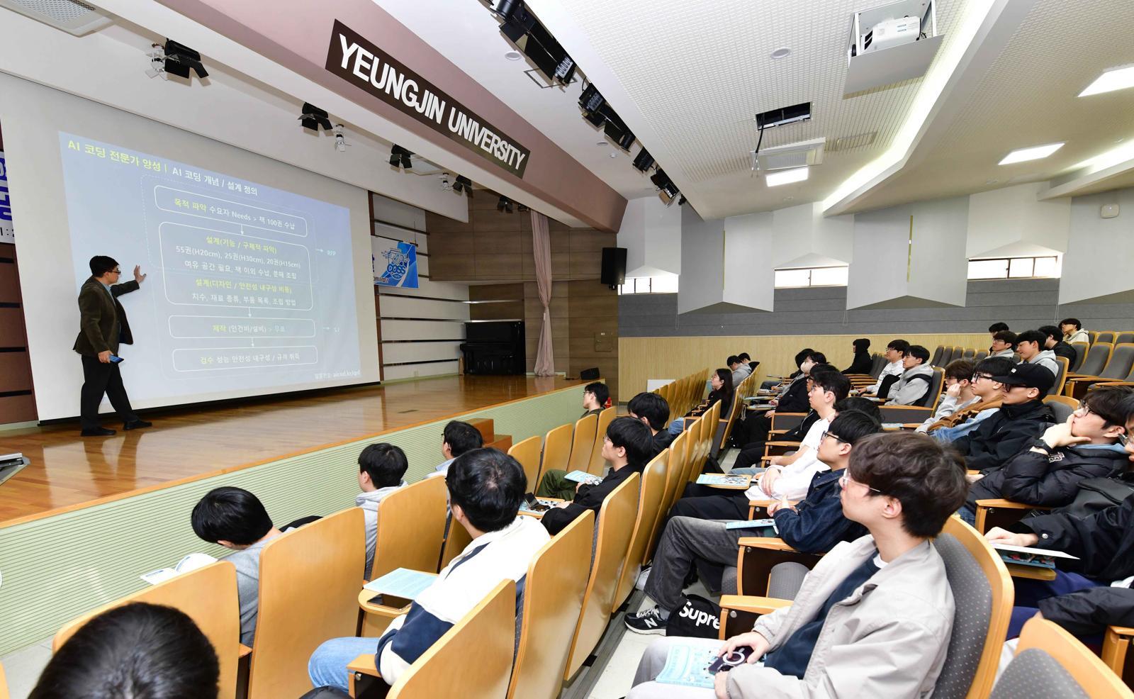최근 대구 북구 영진전문대 인공지능혁신융합대학사업단 강의실에서 재학생들이 이승원 성균관대 교수의 인공지능(AI) 특강을 듣고 있다. 영진전문대 제공
