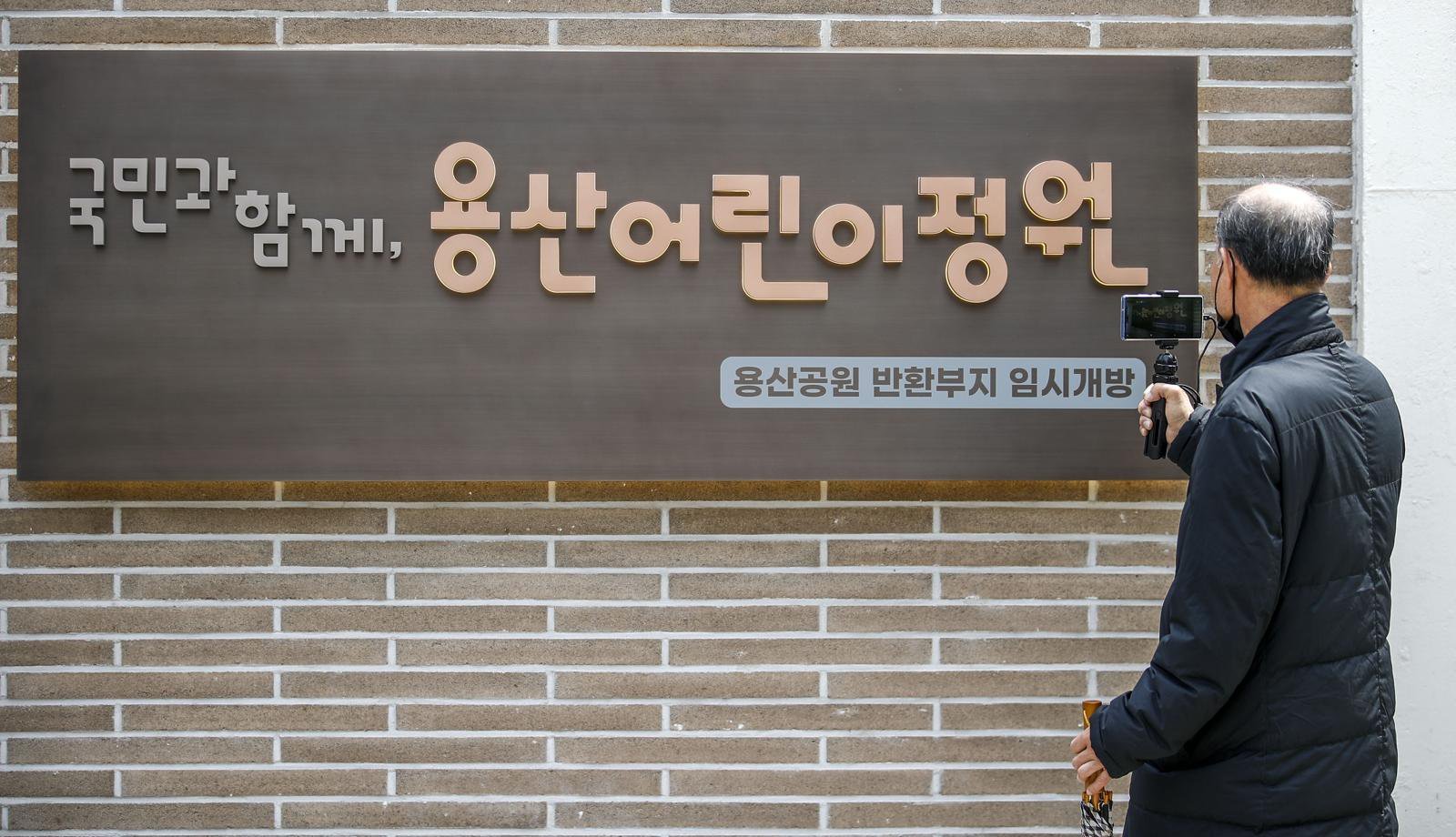 국토교통부는 30일 이런 내용을 담은 ‘용산 반환부지 임시개방구간 관람 등에 관한 규정’ 개정안을 이날부터 시행한다고 밝혔다. 용산어린이정원은 2023년 5월부터 임시 개방됐다. 하지만 대통령실에 인접해 있어 사전예약을 통한 신원확인 및 보안 검색 절차를 거쳐야 했는데, 대통령실이 청와대로 이전하며 전면 개방이 가능해진 것이다.