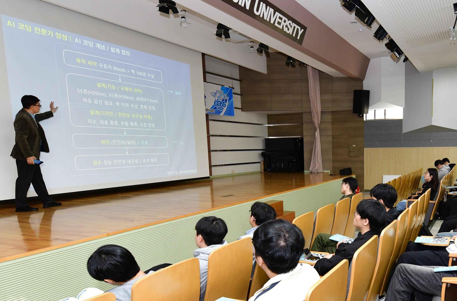 최근 대구 북구 영진전문대 인공지능혁신융합대학사업단 강의실에서 재학생들이 이승원 성균관대 교수의 인공지능(AI) 특강을 듣고 있다. 영진전문대 제공