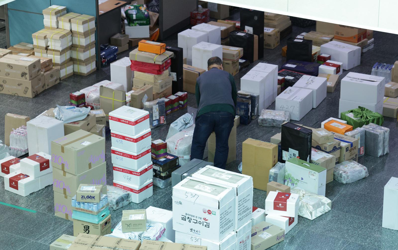 추석 연휴를 앞둔 서울 여의도 국회 의원회관에 추석 선물 택배 상자가 쌓여 있다. 2025.10.1/뉴스1