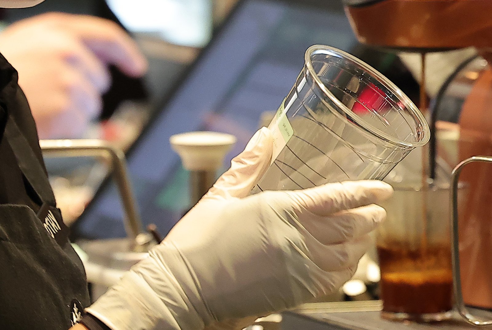 서울 시내 한 카페에서 직원이 일회용 플라스틱 컵을 정리하고 있다. 2025.12.18 뉴스1