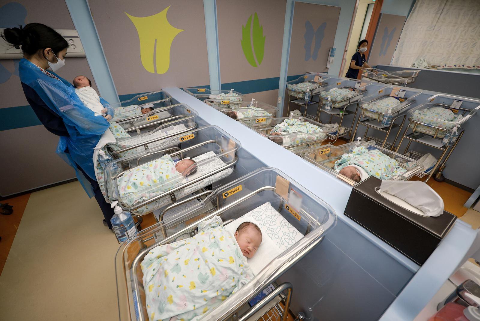25일 경기 고양시 CHA의과학대학교 일산차병원 신생아실에서 간호사가 신생아들을 돌보고 있다 . 2025.09.25. [고양=뉴시스]