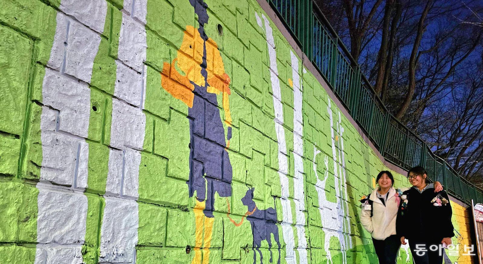 5일 청소년들이 인천 남동구 논현동 사리울공원 옹벽에 그려진 벽화를 감상하며 걷고 있다. 남동구는 보행 경관 개선을 위해 지난해 3월부터 11월까지 등하굣길인 사리울공원 옹벽 등 관내 곳곳에 벽화 조성 사업을 마무리했다.