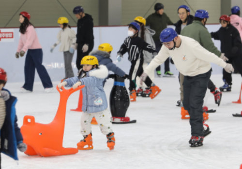 최근 경북 울진군 왕피천공원 빙상장을 찾은 방문객들이 스케이트를 타며 겨울 추억을 만들고 있다. 울진군은 3월 2일까지 매일 오전 10시부터 오후 7시 반까지 5회차로 나눠 빙상장을 운영한다.