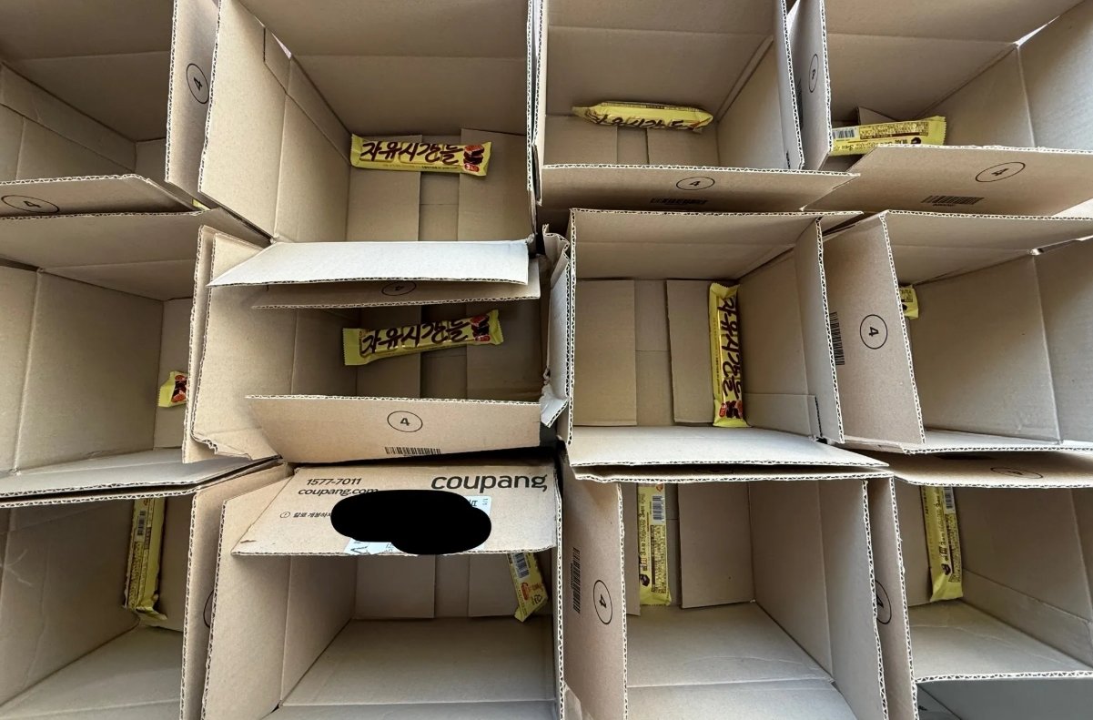 지난 5일 SNS와 스레드에는 ‘지인이 받은 자유시간 15개+15개 상자’라는 글과 함께 배송 인증 사진이 올라왔다.