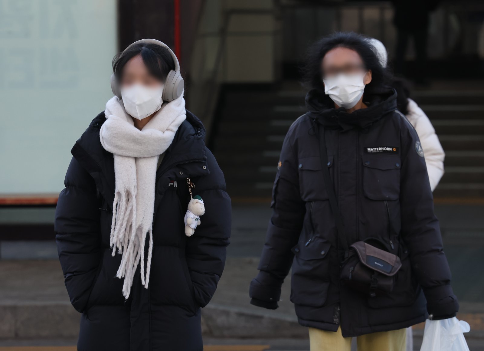 7일 경기 화성시 병점역 인근에서 시민들이 두꺼운 외투를 입고 발걸음을 재촉하고 있다. 이날 오후부터 찬 공기가 본격적으로 남하하면서 목요일인 8일 영하 10도 안팎의 강추위가 찾아올 전망이다. 2026.1.7 뉴스1