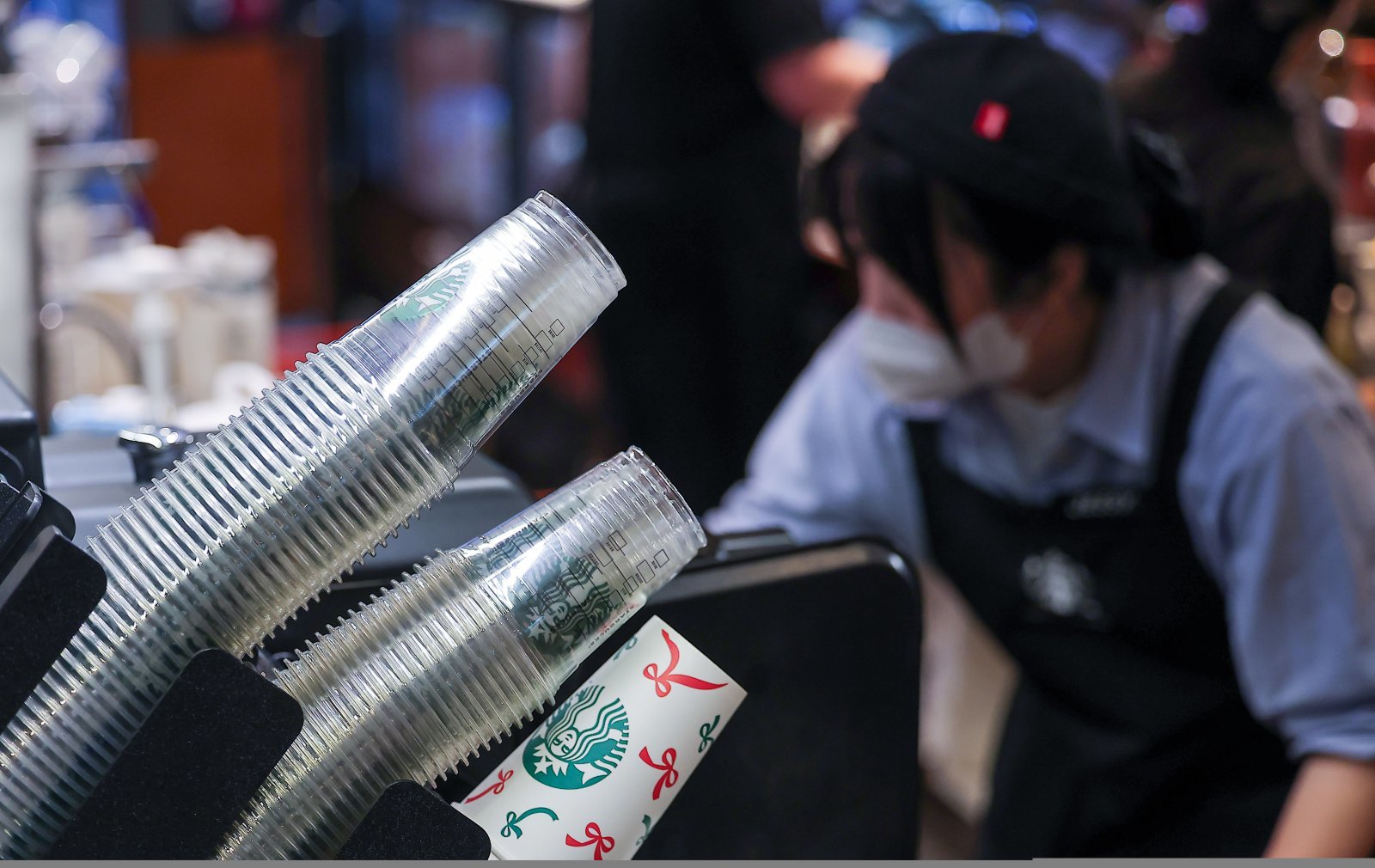서울 시내 한 카페에 진열된 일회용 플라스틱 컵. 2025.12.18/뉴스1