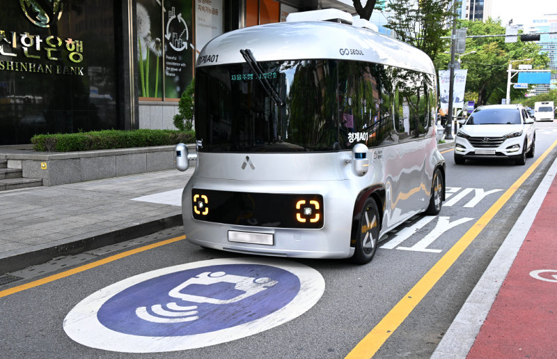 국내 기업이 개발해 서울 청계천에서 운행 중인 자율주행버스 ‘ROii(로이)’. 서울시 제공서울시는 로봇을 실제 도시에서 시험해보는 실증 사업에도 속도를 내고 있다. 기업이 만든 로봇이 거리와 공원 등 생활 공간에서 작동할 수 있도록 규제를 손보고, 실험 기회를 함께 제공하는 방식이다.
