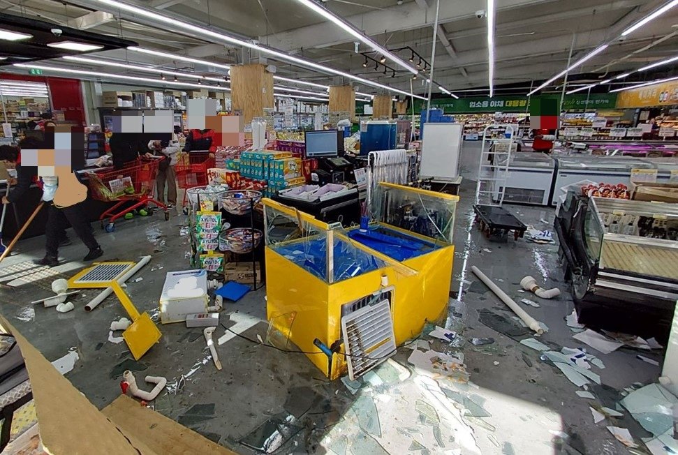 이 사고로 마트 출입구 등이 파손됐고, 유리 등이 튀며 20대 마트 직원 1명이 타박상을 입고 인근 병원으로 이송됐다.