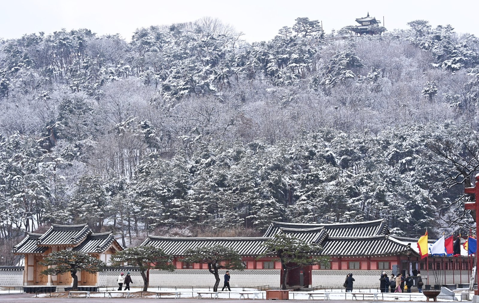 대설특보가 발효된 18일 경기도 수원시 팔달산에 하얀 눈이 쌓여 있다. 2025.03.18.[수원=뉴시스]