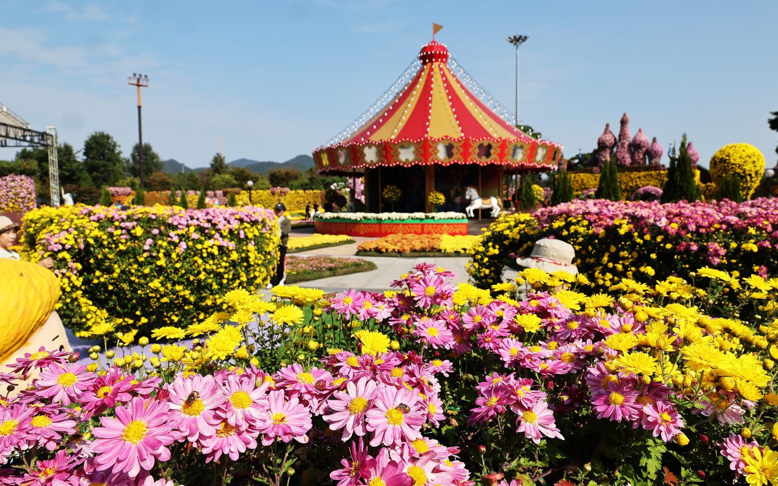 함평군은 ‘2025 대한민국 국향대전’에서 군 농업기술센터가 자체 개발한 23종의 국화 육종을 활용해 회전목마, 대관람차 등 대형 국화 조형물을 전시했다. ‘마법의 국향랜드’를 주제로 국화와 예술, 빛과 체험이 어우러진 환상적인 테마축제로 꾸몄다.
